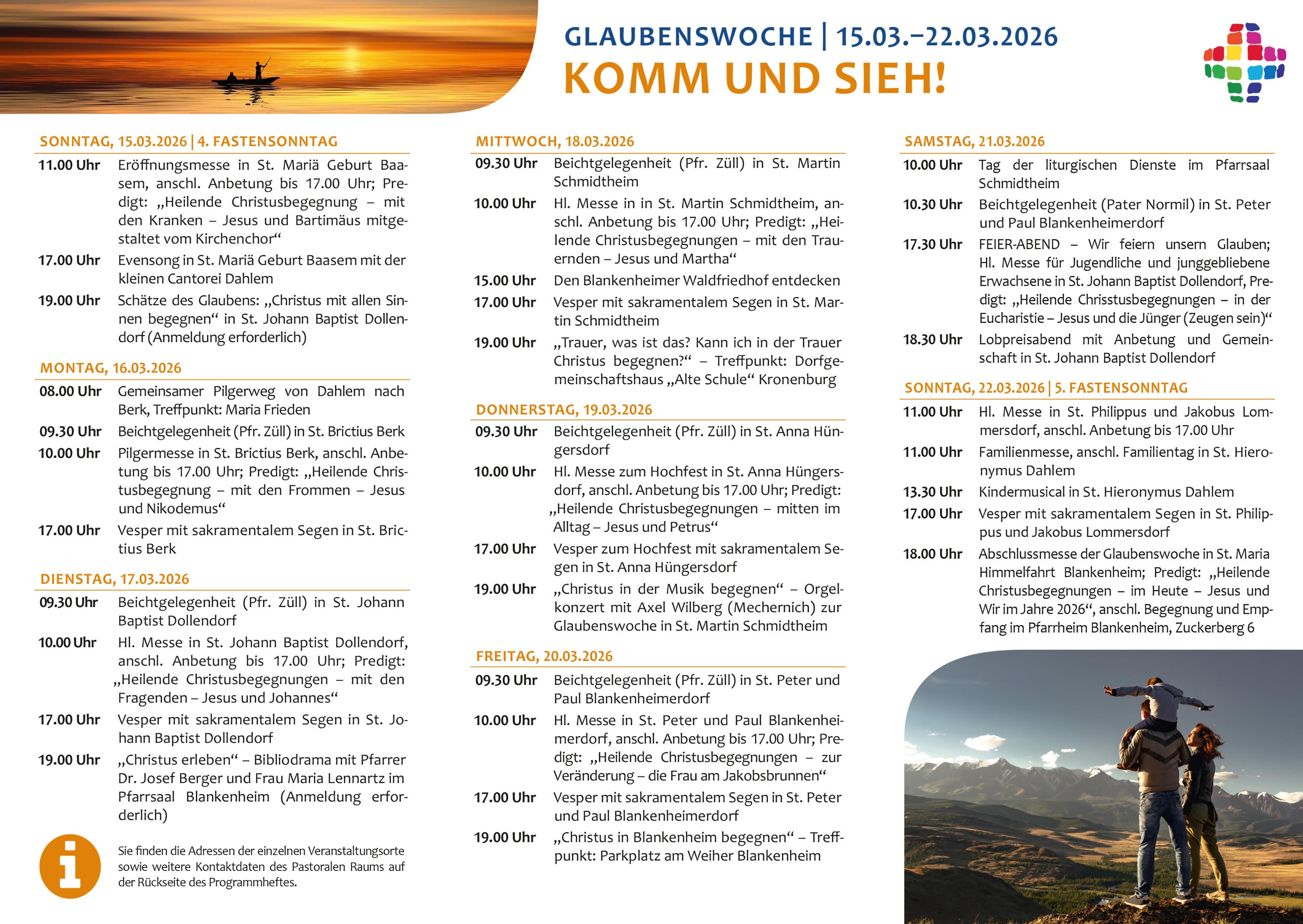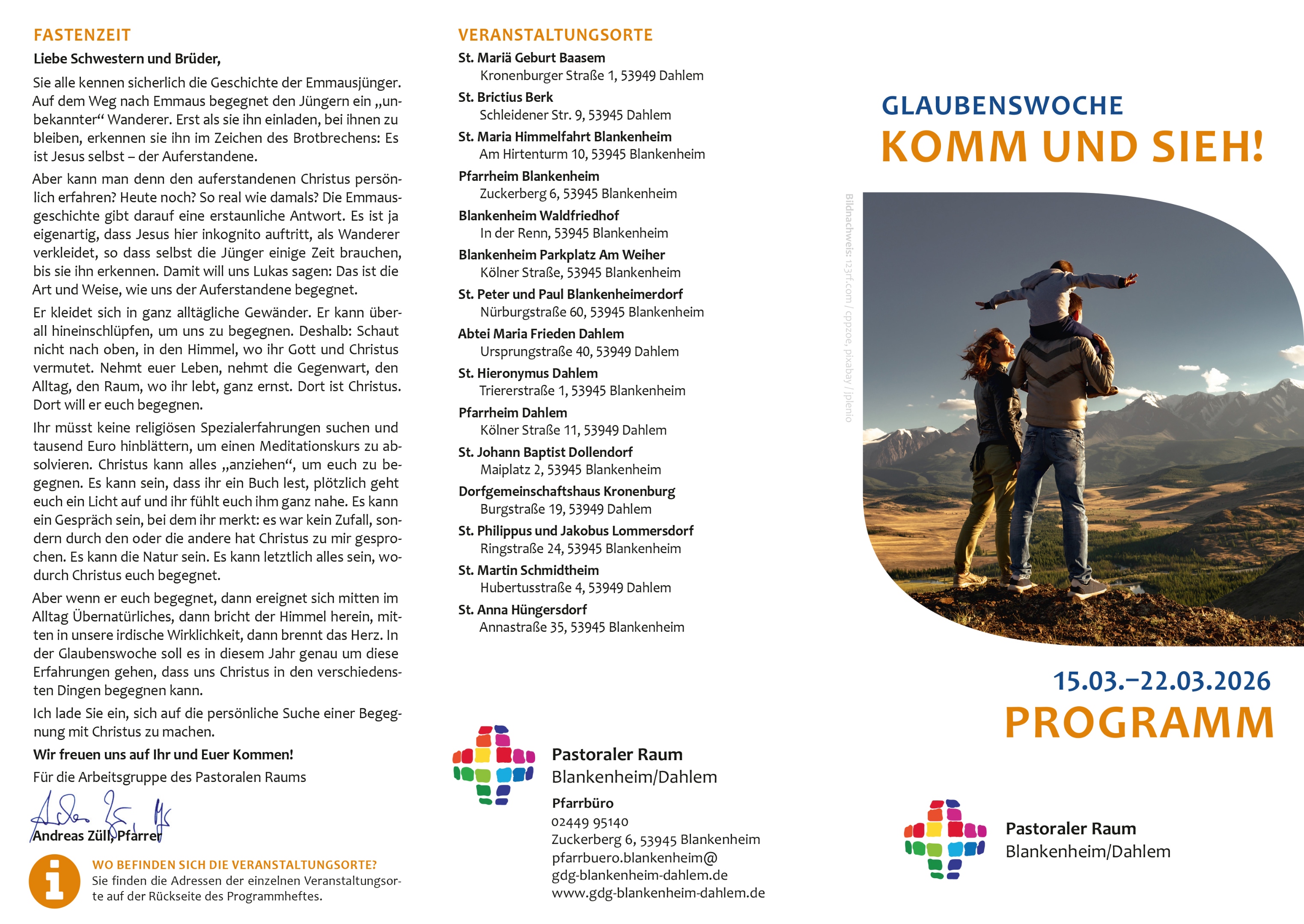 St. Agatha Alendorf, St. Mariä Geburt Baasem, St. Briktius Berk, St. Hieronymus Dahlem, St. Johann Baptist Dollendorf, St. Johann Baptist Kronenburg, St. Johann Baptist Mülheim, St. Johann Baptist Ripsdorf, St. Margaretha Reetz, St. Mariä Himmelfahrt Blankenheim, St. Mariä Himmelfahrt Uedelhoven, St. Martin Schmidtheim, St. Peter und Paul Blankenheimerdorf, St. Philippus und Jakobus Lommersdorf, St. Wendelin Rohr